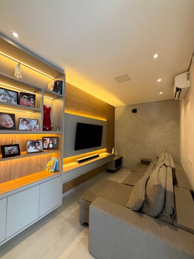 • 03 Suites todas com closet, ar condicionado e marcenaria completa, sendo 01 master com chuveiro duplo