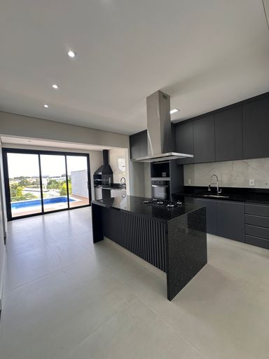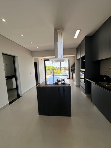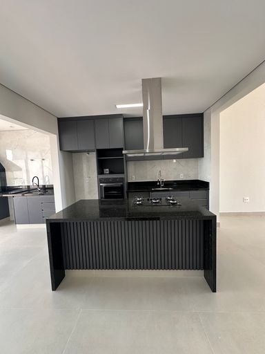 • Cozinha com ilha central equipada e integrada com living