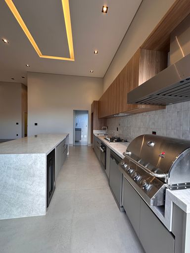 • Cozinha Gourmet com ilha central equipada e integrada com living toda equipada (Cervejeira, lava louças, churrasqueira a gás, forno a gás e Cooktop)