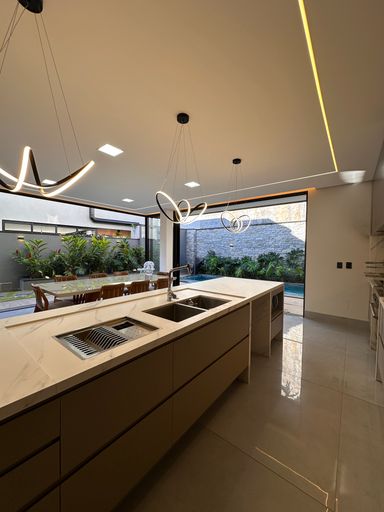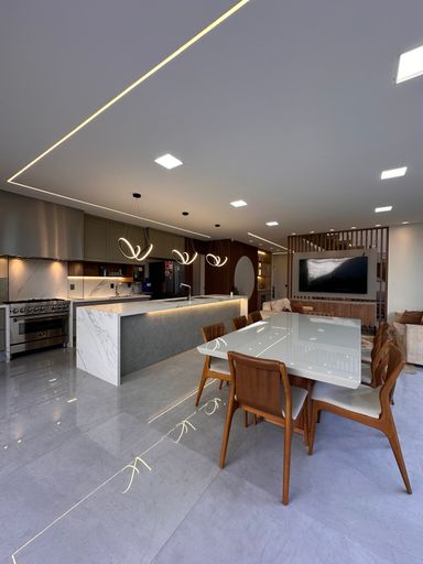 • Cozinha Gourmet com enorme ilha, toda equipada e repleta de marcenaria