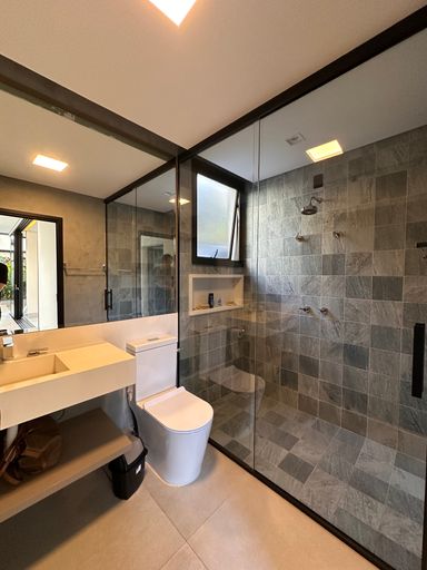 • 3 suítes, sendo 01 master com cuba e chuveiro duplos e enorme Closet