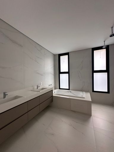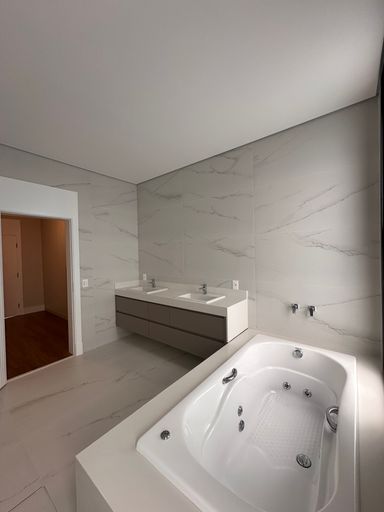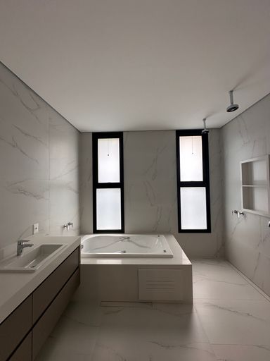 • 4 suítes, sendo 01 master com closet, cuba e chuveiros duplos e banheira de hidromassagem