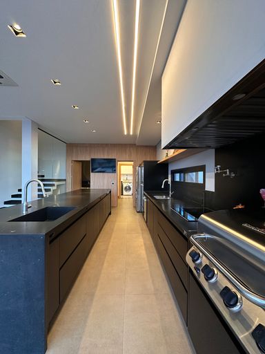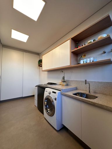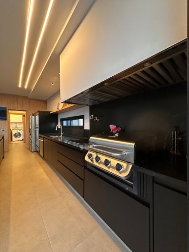 • Cozinha Gourmet com enorme ilha, toda equipada com eletrodomésticos Eletromec e repleta de marcenaria