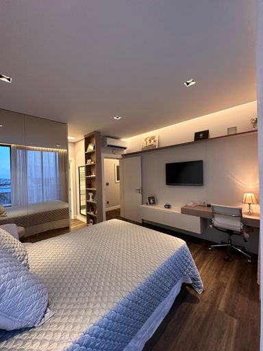 • 3 suítes, sendo 02 no modelo americano e 1 independente com closet, todas com marcenaria completa e ar condicionado