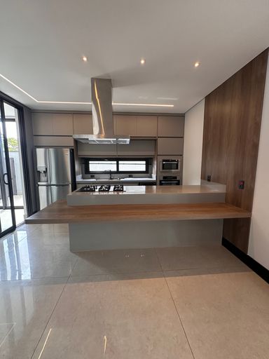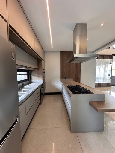• Cozinha com ilha toda equipada e repleta de marcenaria