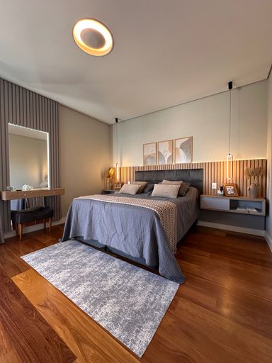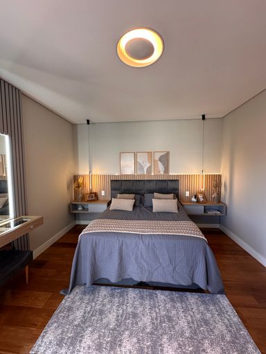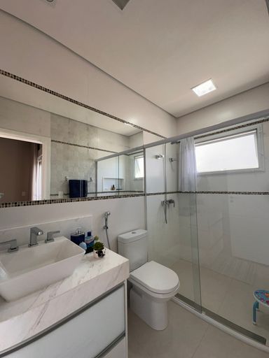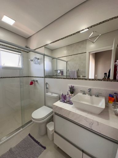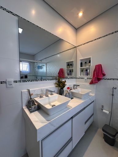 • 3 suítes, sendo 01 master com cuba e chuveiro duplos, closet, ar condicionado em todas