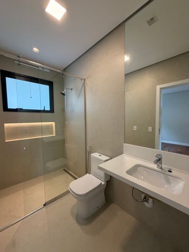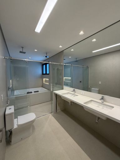 • 4 suítes, sendo 01 master com cuba e chuveiro duplos e banheira de hidromassagem, todas com espaço para closet