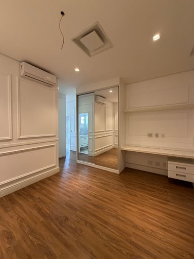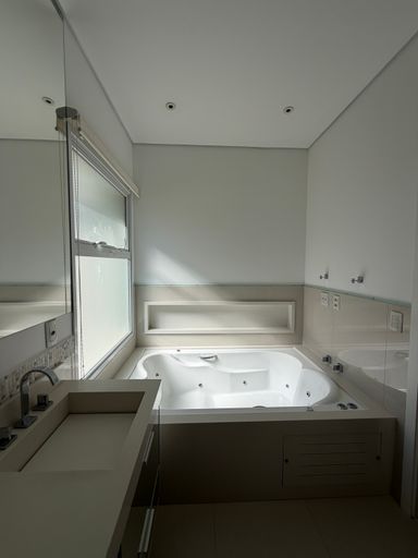 • 3 suítes, sendo 01 master com cuba e chuveiro duplos + Banheira de Hidromassagem e Closet , todas com marcenaria completa e ar condicionado