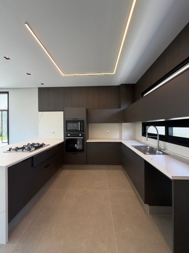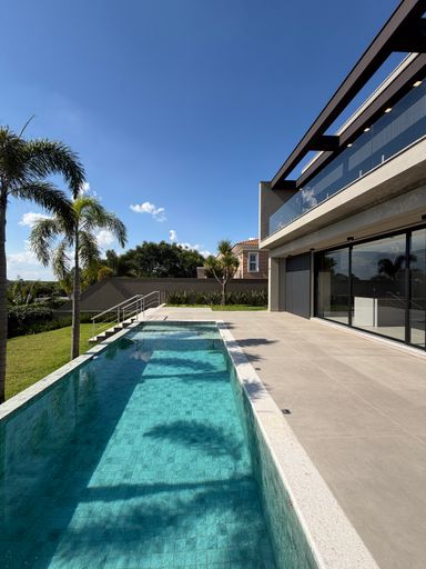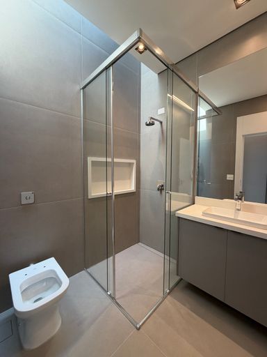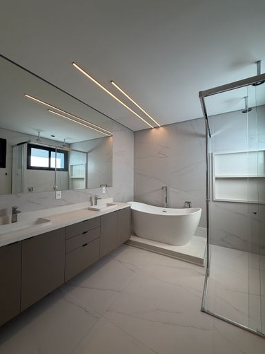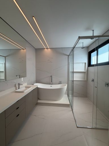 • 4 suítes, sendo 01 master com closet, cuba dupla, chuveiro duplo e banheira de imersão